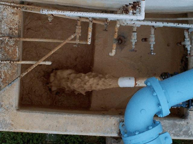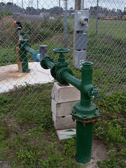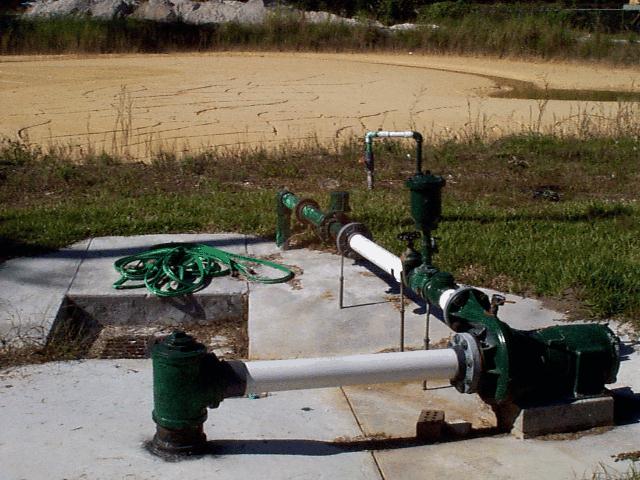 Ground water well #10 (8 inch diameter) pumps water from a surficial aquifer 45 feet below the ground at a rate of 200 gallons per minute. |