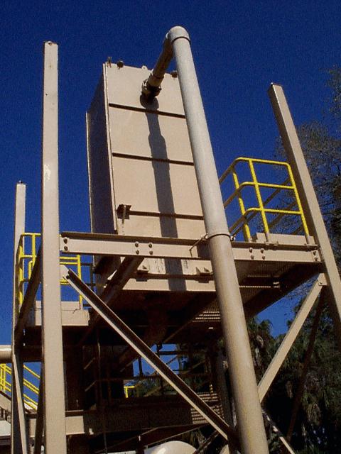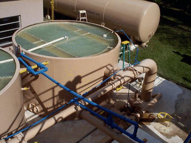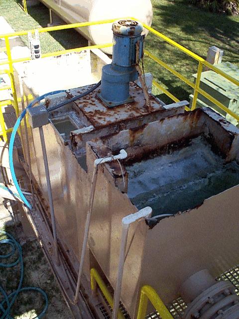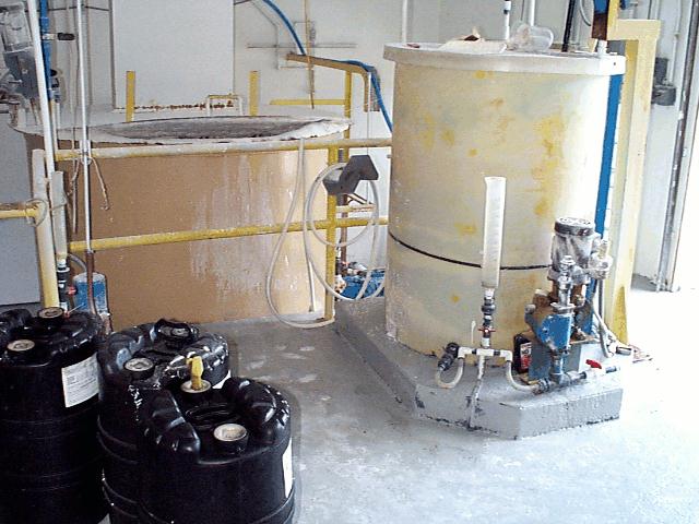 Handling tanks mix and meter lime and anionic polymer coagulant s (p373) into the water treatment system. |