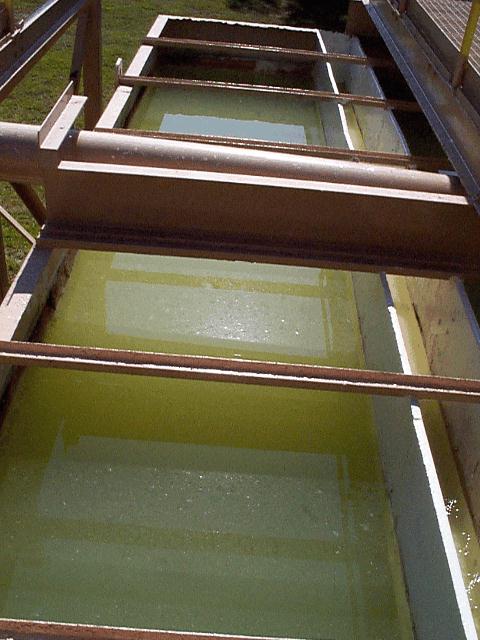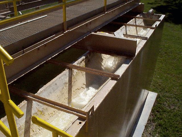 The settling basin (p381) allows the solid precipitate to flocculate into large particles. This creates a sludge that settles to the tank bottom. |