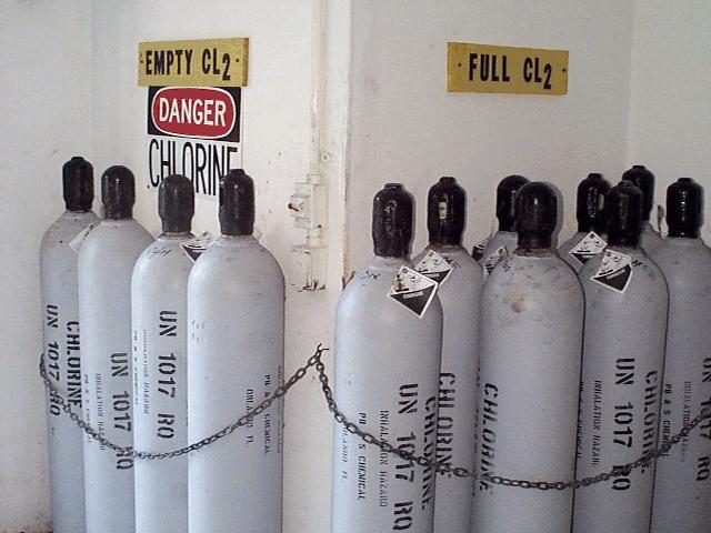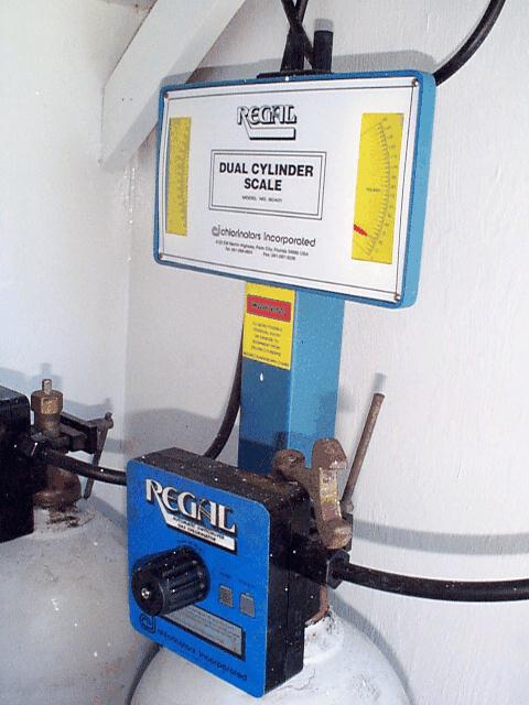 Storage cylinders (p385) contain the chlorine gas that serves as the disinfectant. |